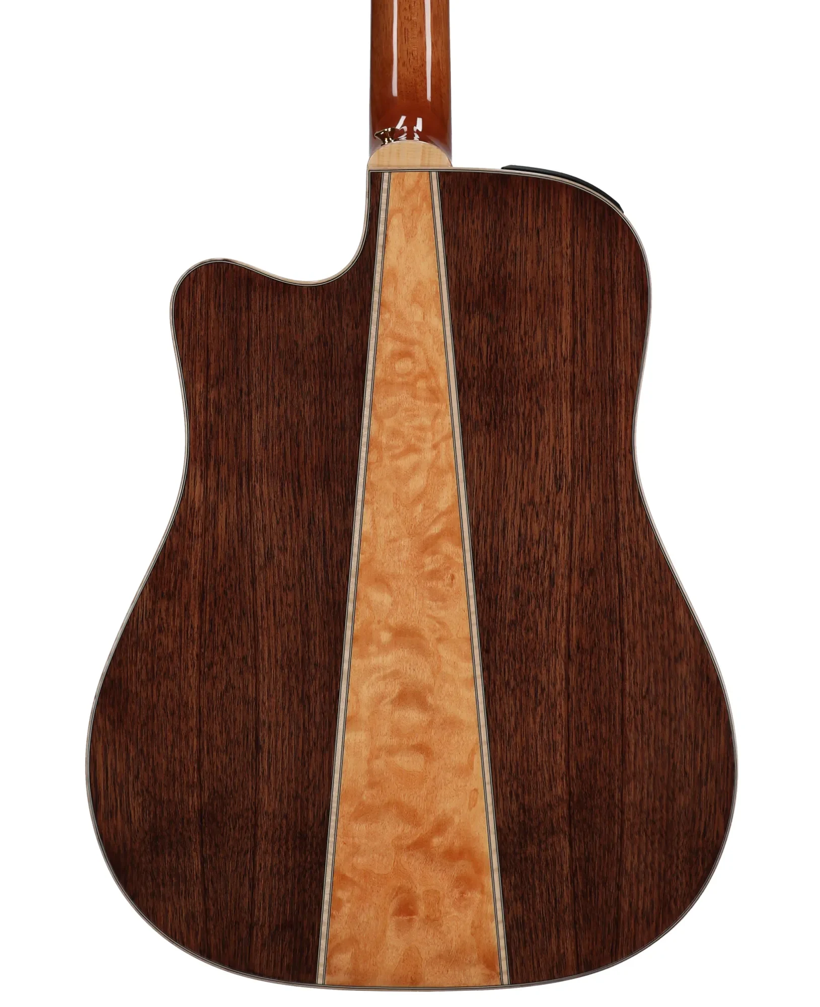 For players seeking stage-worthy features and an uncommon look, the GD93CE features a solid spruce top, black walnut/maple sides and a beautiful three-piece black walnut/maple back. The slim mahogany neck and 12”-radius bound laurel fingerboard provide great feel and playability, while the onboard Takamine TK-40D preamp system gives you a built-in tuner, three-band EQ and gain controls, mid contour switch, notch filter and EQ bypass switch for the ultimate in versatility and sound quality.