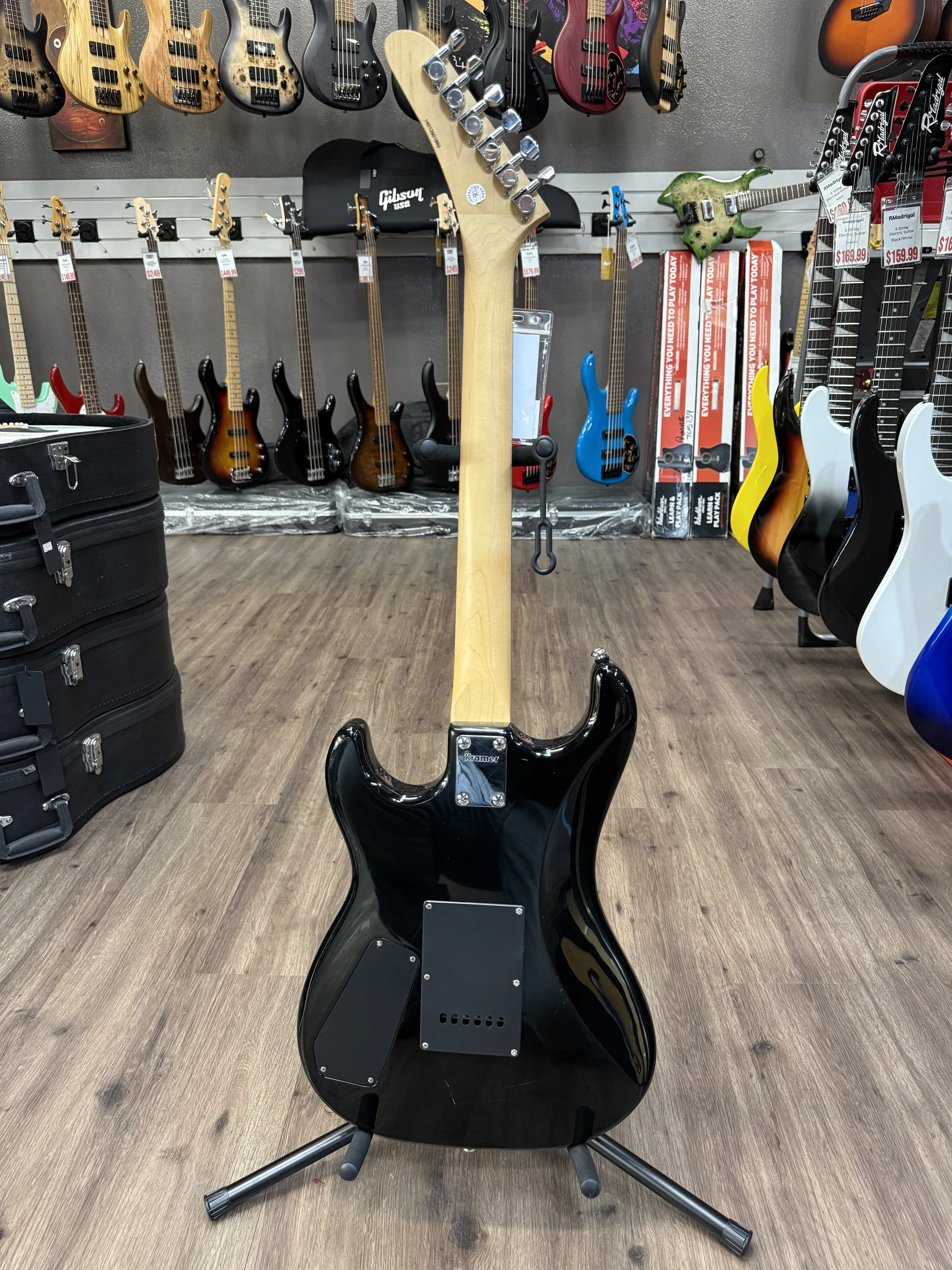 The Kramer Baretta Special is pure rock attitude at an unbeatable price. Featuring a single high-output humbucker, it delivers raw, punchy tone perfect for hard rock and metal. Its fast, slim neck makes shredding effortless, while the vintage-style tremolo invites expressive dive-bombs and pitch bends. Lightweight, comfortable, and stage-ready, the Baretta Special is the ultimate weapon for players who want classic Kramer style and killer performance without breaking the bank.
