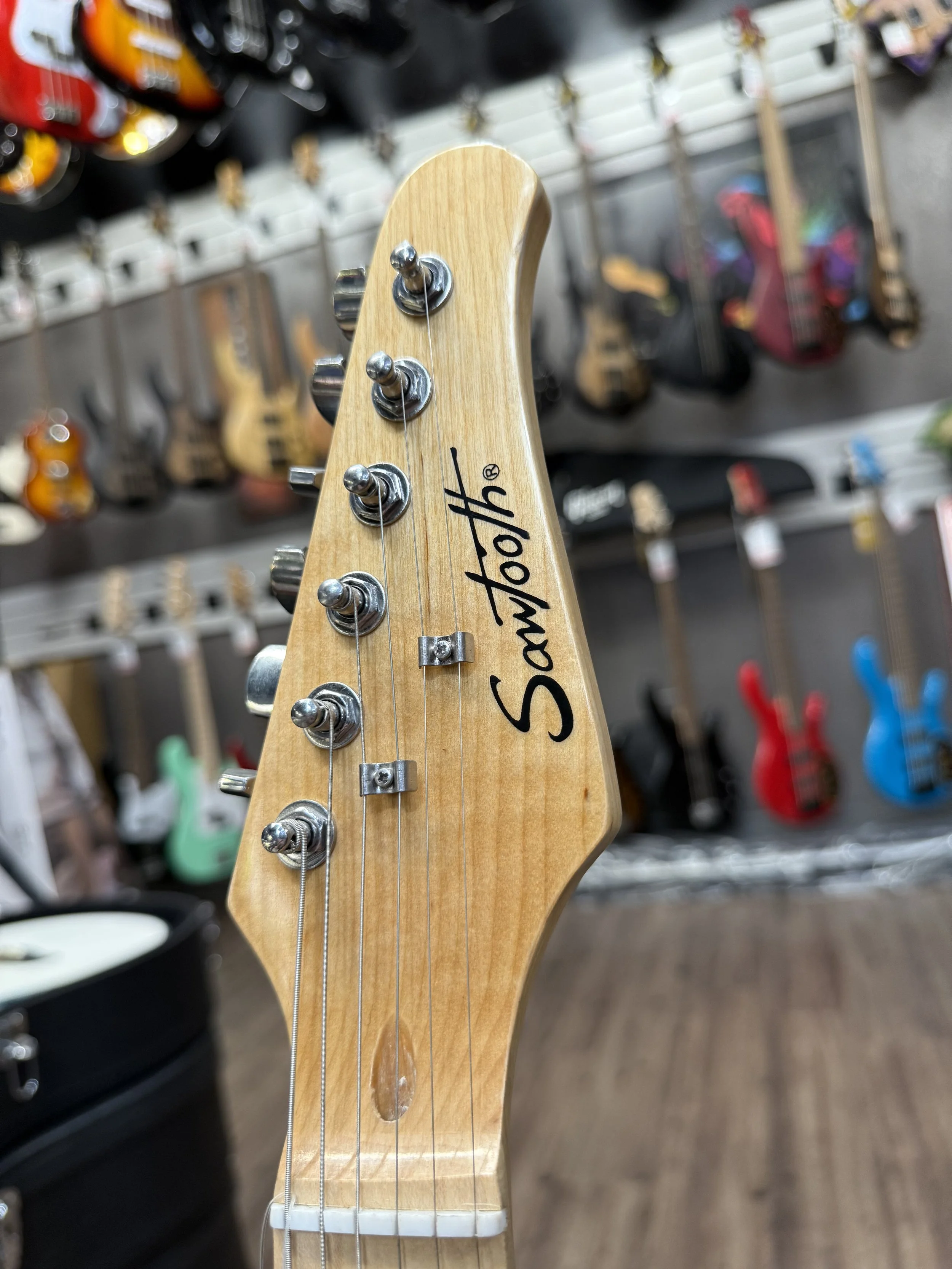 The Sawtooth Telecaster in sleek black delivers that legendary twang and bite Tele players love. Equipped with two crisp single-coil pickups, it offers bright, cutting tones perfect for country, blues, rock, and more. The smooth maple neck and classic single-cut body make it comfortable to play for hours, whether you’re on stage or in the studio. Stylish, versatile, and built for performance, this Tele is ready to become your everyday workhorse guitar.