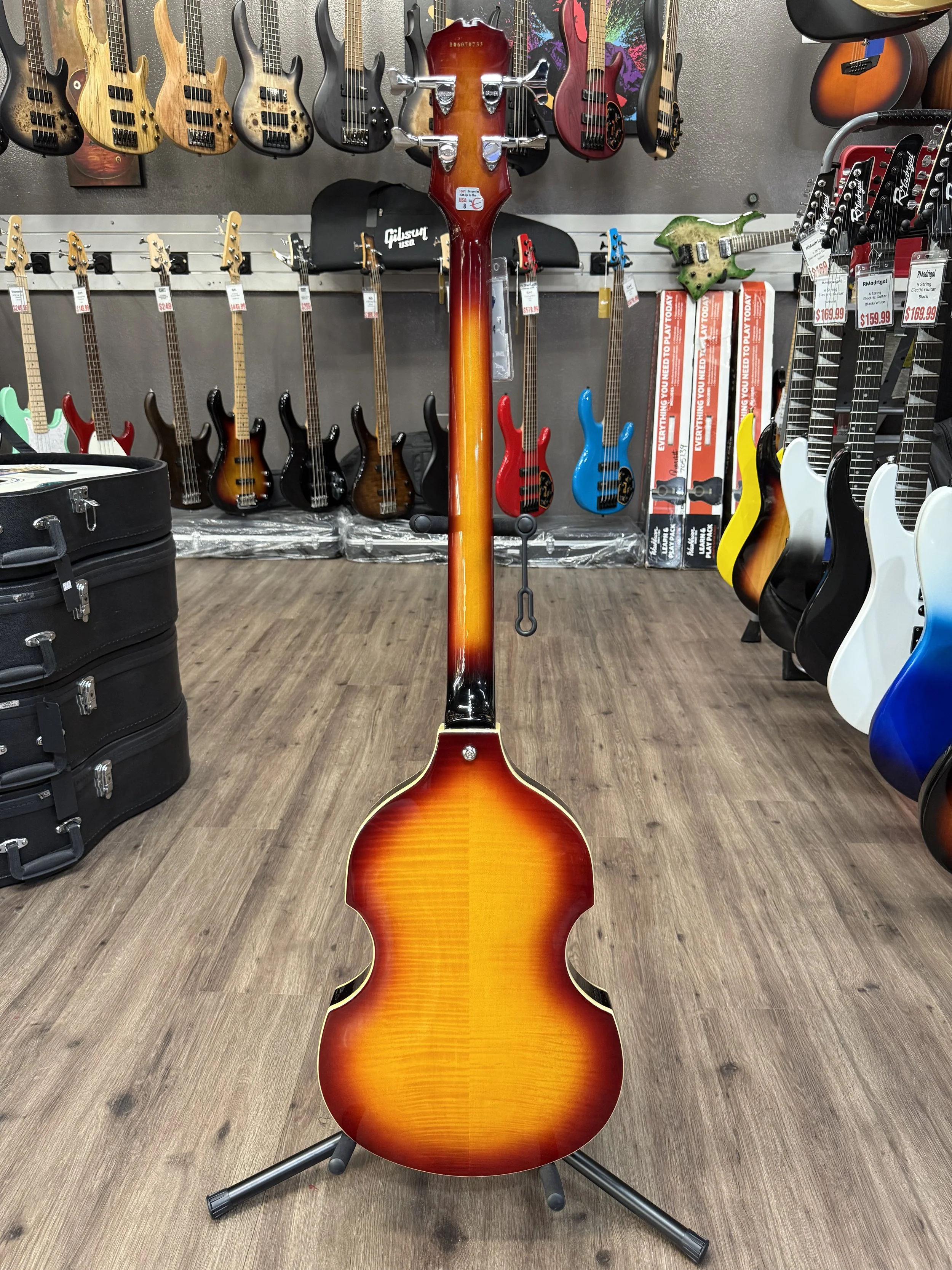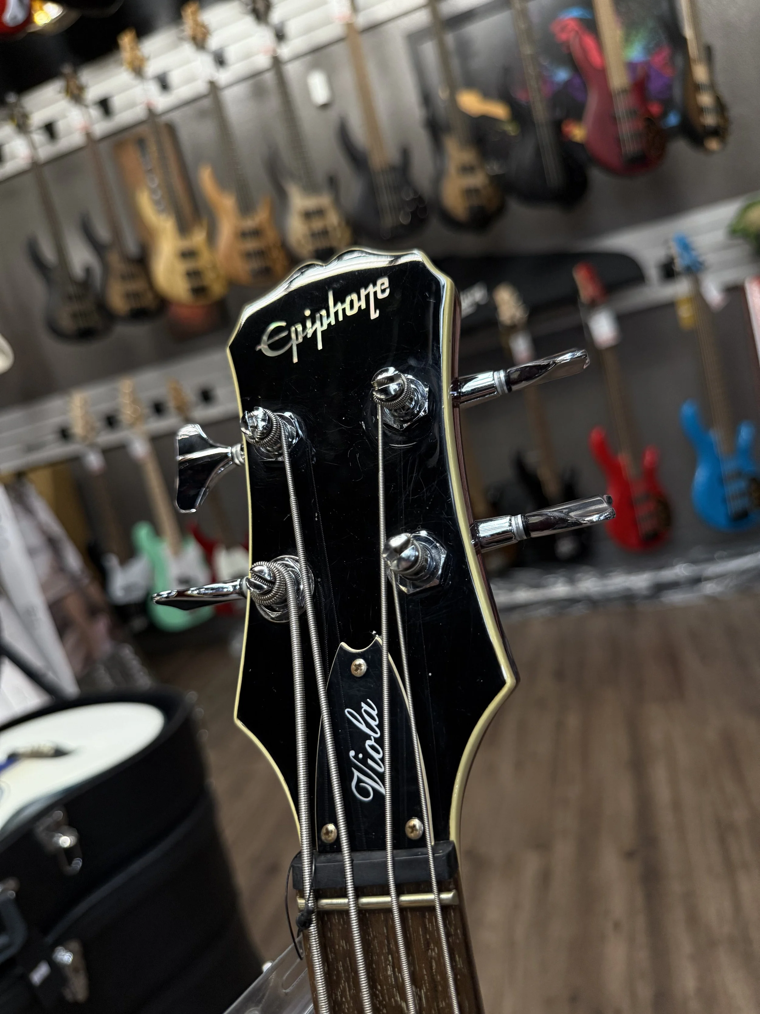 The Epiphone Viola Bass offers classic vintage vibes with modern playability. Its unique semi-hollow body delivers warm, woody tones with plenty of punch and resonance, perfect for jazz, blues, and rock. Equipped with a smooth, fast neck and versatile pickups, it’s built to handle everything from deep grooves to melodic runs. Stylish and comfortable, the Viola Bass is a standout choice for players seeking distinctive tone and timeless style.